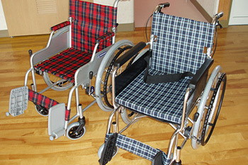 大友財団の助成をいただき、利用者玄関とトイレに手すりを設置しました。また、車椅子2台をいただき、オプスに常備できるようになりました。